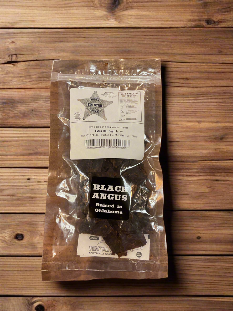Experience the rich, bold flavor of Tin Star Company Beef Jerky, crafted from premium Black Angus beef. Each tender, savory strip delivers a satisfying protein boost, perfect for on-the-go snacking. Included with every pack is a convenient toothpick, making it easy to enjoy anytime, anywhere. Elevate your snack game with this delicious and practical treat.